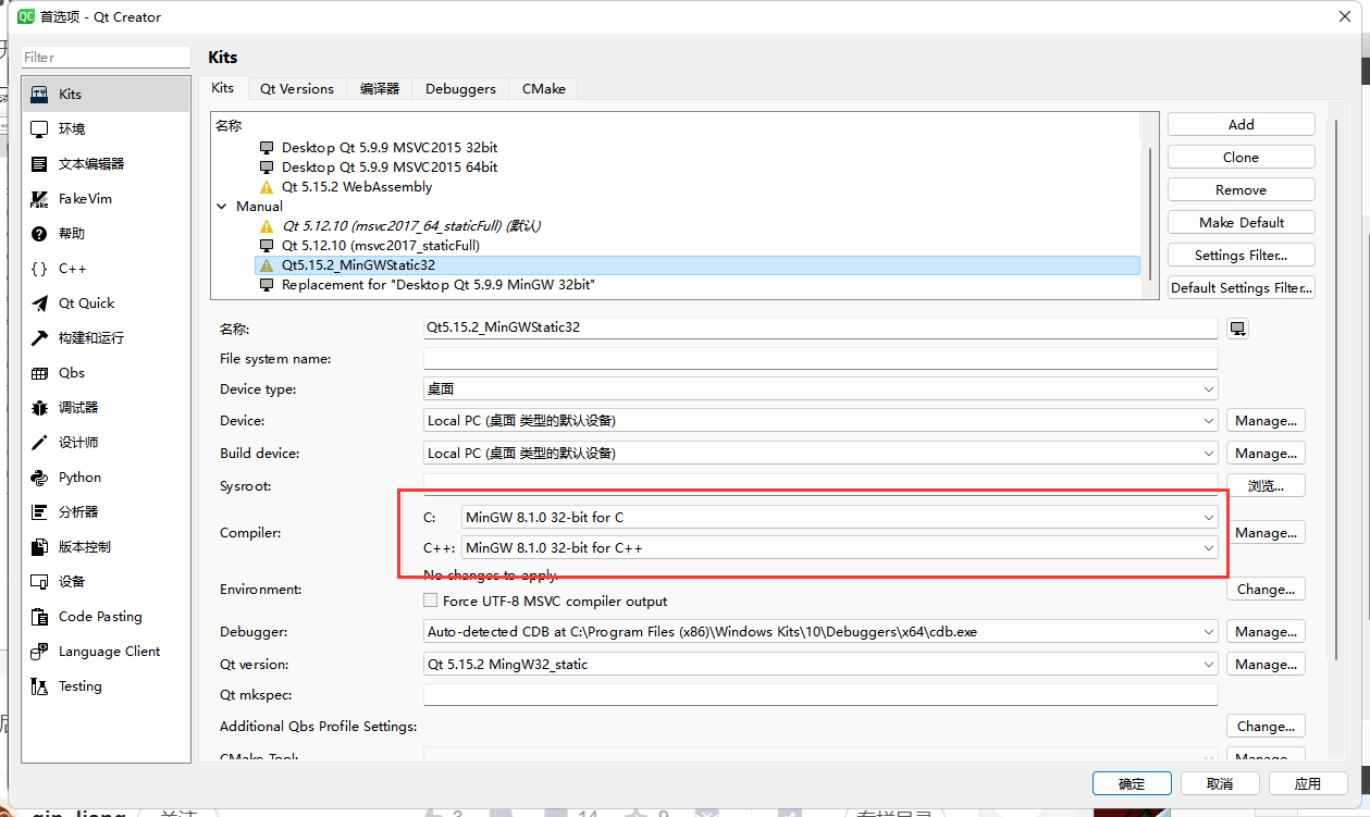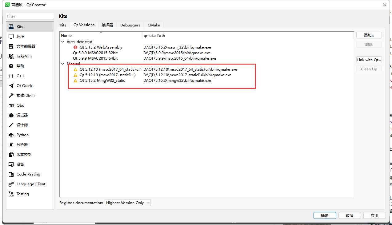 编译完成后添加到Qt Versions